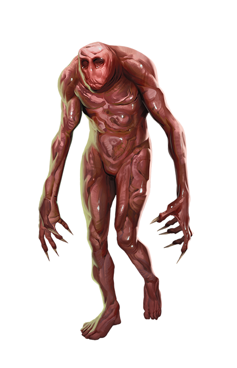 Among the subtler of the alghollthu creations were the ugothols—also known as faceless stalkers. These twisted beings used shapeshifting to infiltrate settlements and assassinate key targets. They sowed discord and replaced leaders, causing unwanted organizations to implode and bothersome people to lose face and eventually disappear. Entirely terrestrial in nature, ugothols can easily extend alghollthu plots above the waves for extended periods of time, giving their aquatic masters enhanced reach into these unpleasantly dry realms. Today, most faceless stalkers—like the less dangerous ulat-kinis—pursue programmed goals without the guidance of alghollthu rule. Faceless stalkers prefer to live as close to the sea coast as possible, although they are not aquatic creatures themselves. Most dwell in tiny tribes in marshlands. Others live in the sewers of coastal towns.
